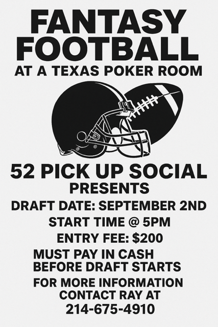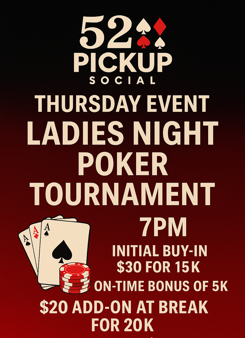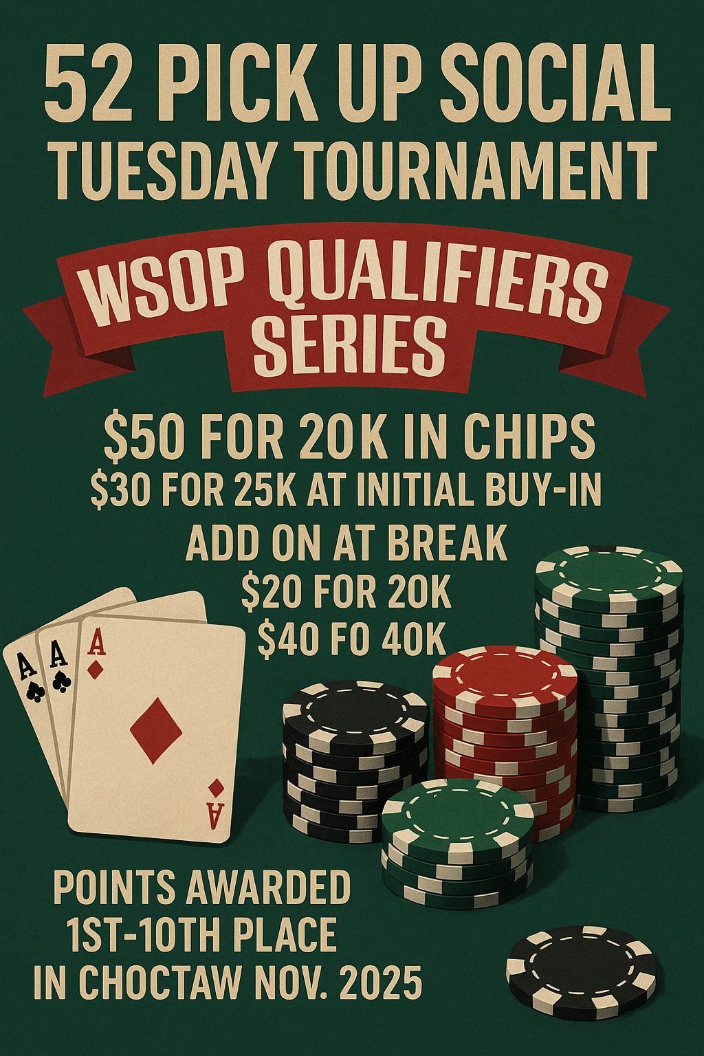 Well to tell you the truth, we dont actually play any 52 card pick up. The name just sounded good. But you will be playing all the poker classics you know and love. In a secure, well appointed, comfortable social club. We have the finest dealers in the DFW area with years of experience and complete knowledge of the games they deal. For additional security we have full video surveillance of every table and a floor managers to make final calls on disputed hands. Come on out and let us show you how a poker room should be.